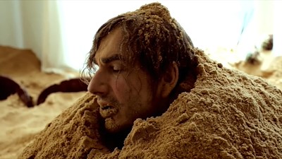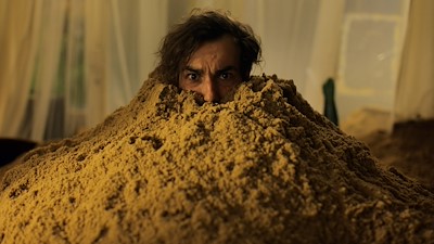 Benno est un grincheux ; il ne cesse de râler contre sa voisine qui respire la joie de vivre. Un jour, Benno découvre du sable dans son lit et constate avec horreur que lui-même se dissout peu à peu. Ce qui pourrait sembler tragique, voire totalement irréel, est simplement amusant dans le film. En voyant certaines scènes, on ne peut que rire aux éclats. Cela tient aussi au fait que Peter Luisi pousse la plaisanterie jusqu’au bout avec le plus grand sérieux. Et c’est précisément ce mélange qui fait de ses films, en particulier de L’Homme de sable , des comédies réussies. (Extrait)