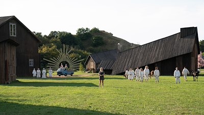 Léo MoserMidsommar teilt sich den groben Verlauf mit Ari Asters Debütfilm Hereditary: Wieder gerät eine Gruppe ahnungsloser Protagonisten in ein Ritual, das sie unaufhaltsam ins Verderben führt. Was passiert, ist also absehbar, aber der Reiz liegt darin, wie genau es dazu kommt.